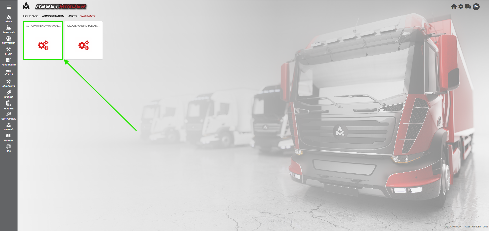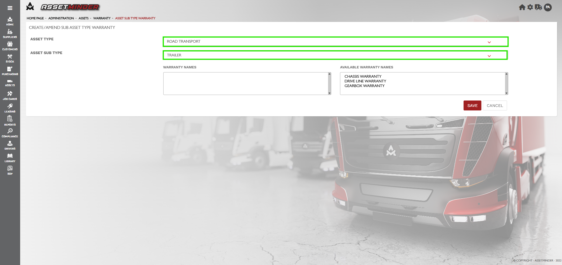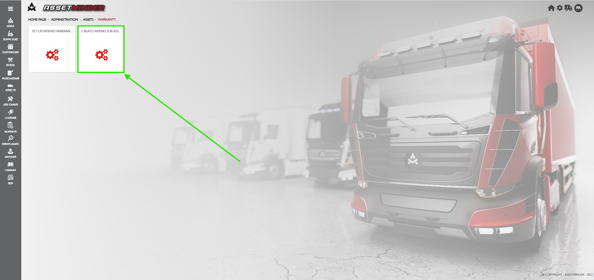 Click on the CREATE/AMEND SUB ASSET TYPE WARRANTY button.