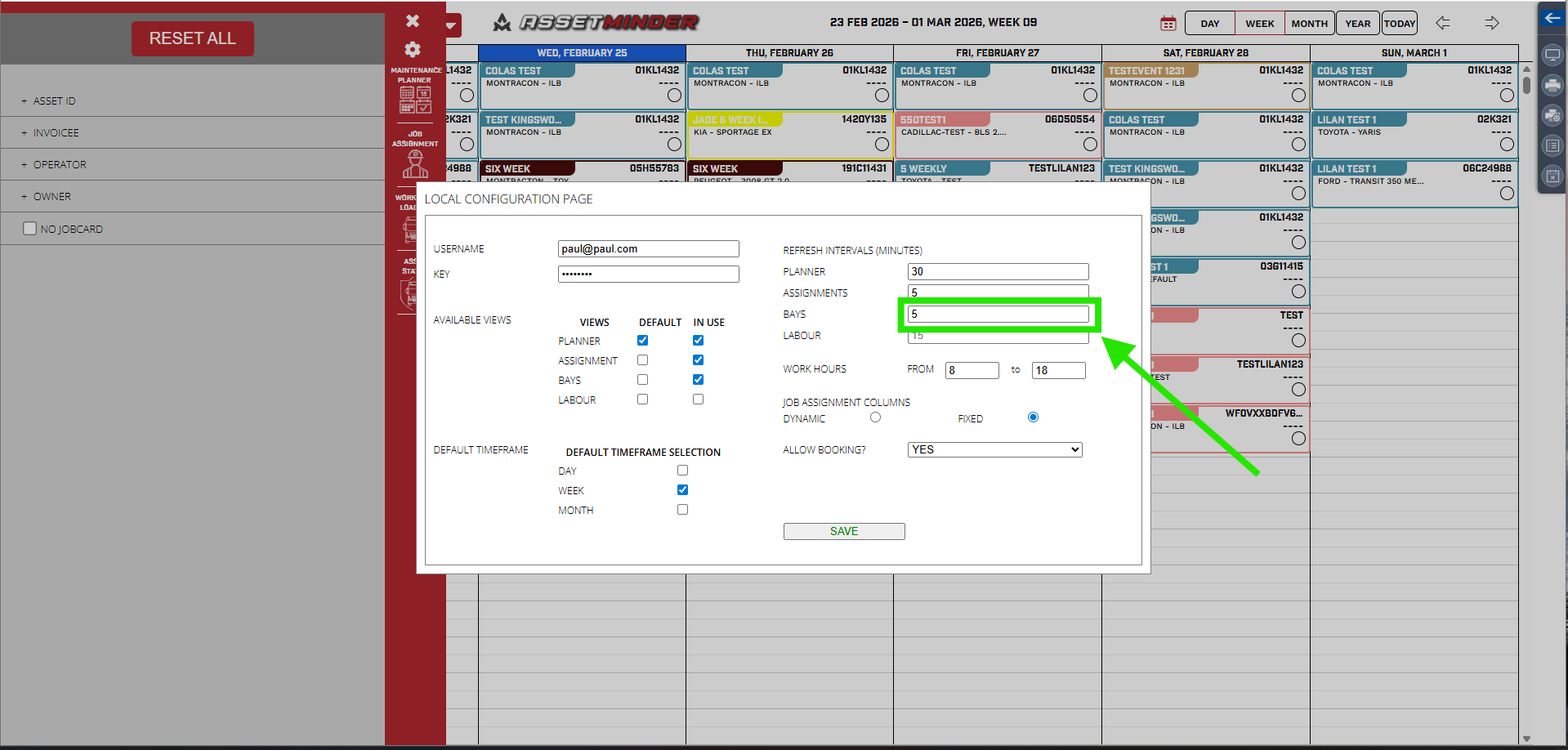 4. Adjust the Number of Bays up or down to match the workshop
