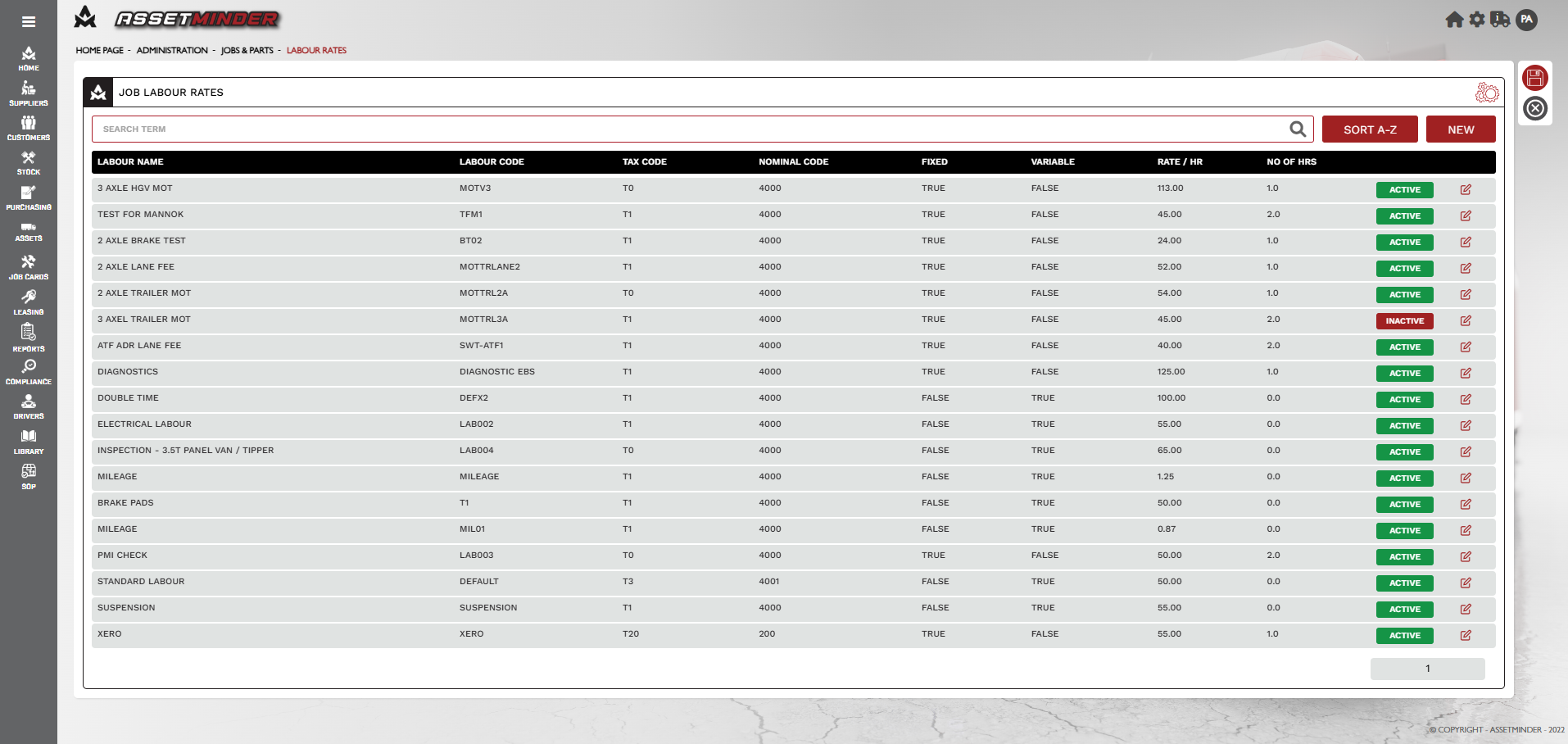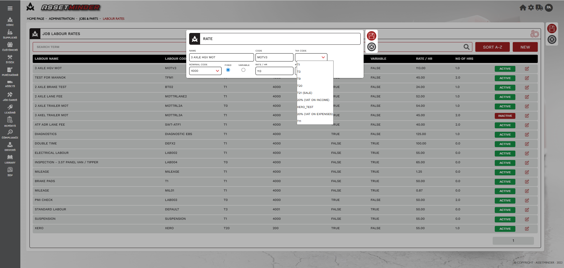 If there are any labour rates using the old tax code then they can be updated to use the new tax code. Navigate to: