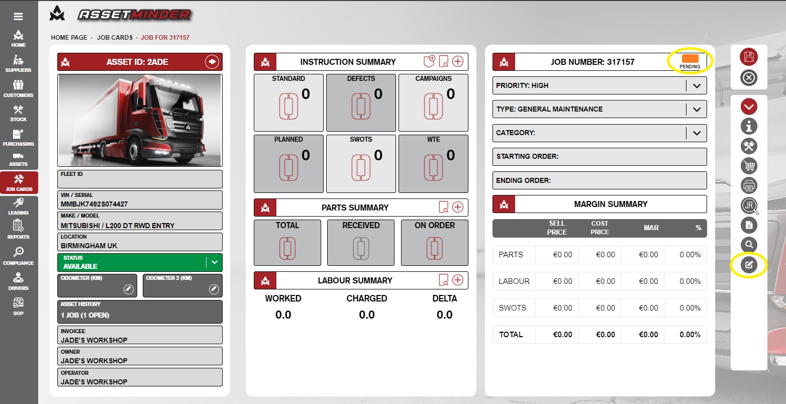 On the main screen within a job, you now have the convenience of signing off a Job Card without having to navigate through to the Job Card Review (JR) section.