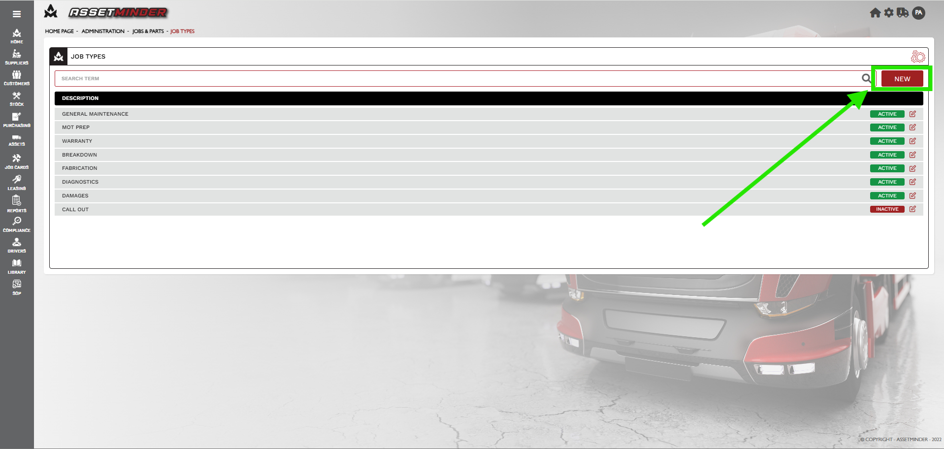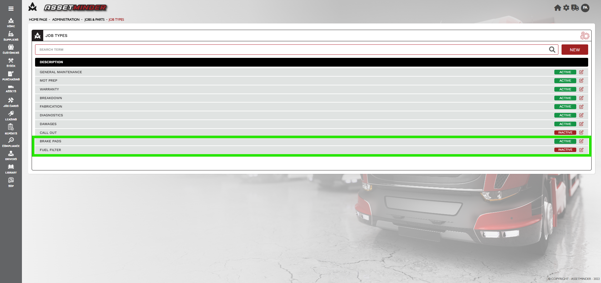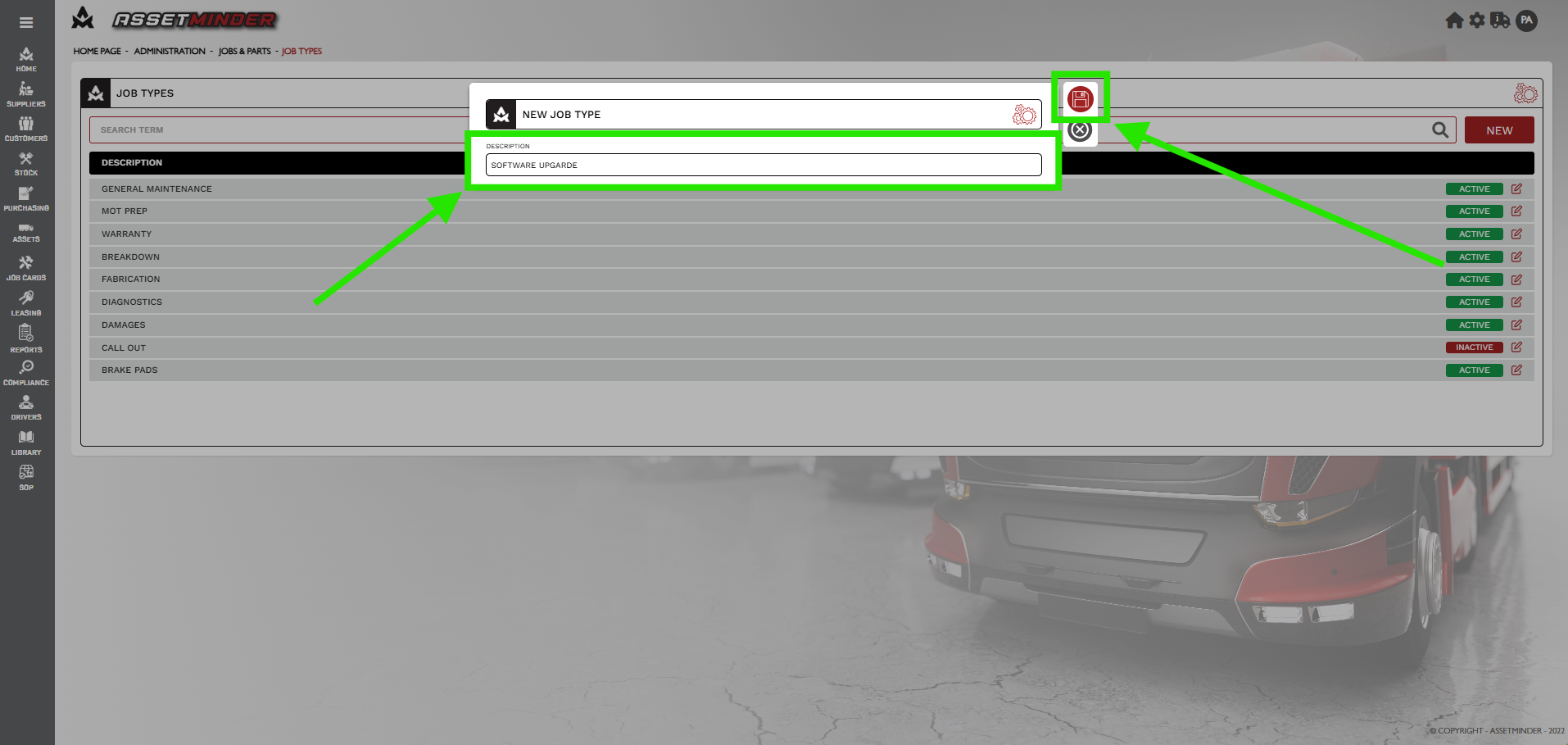 Job types are also called "maintenance types". It is beneficial to add extra job types to differentiate the various maintenance tasks that can be performed at your organisation. These can assist in generating reports in greater detail. Examples of job types include