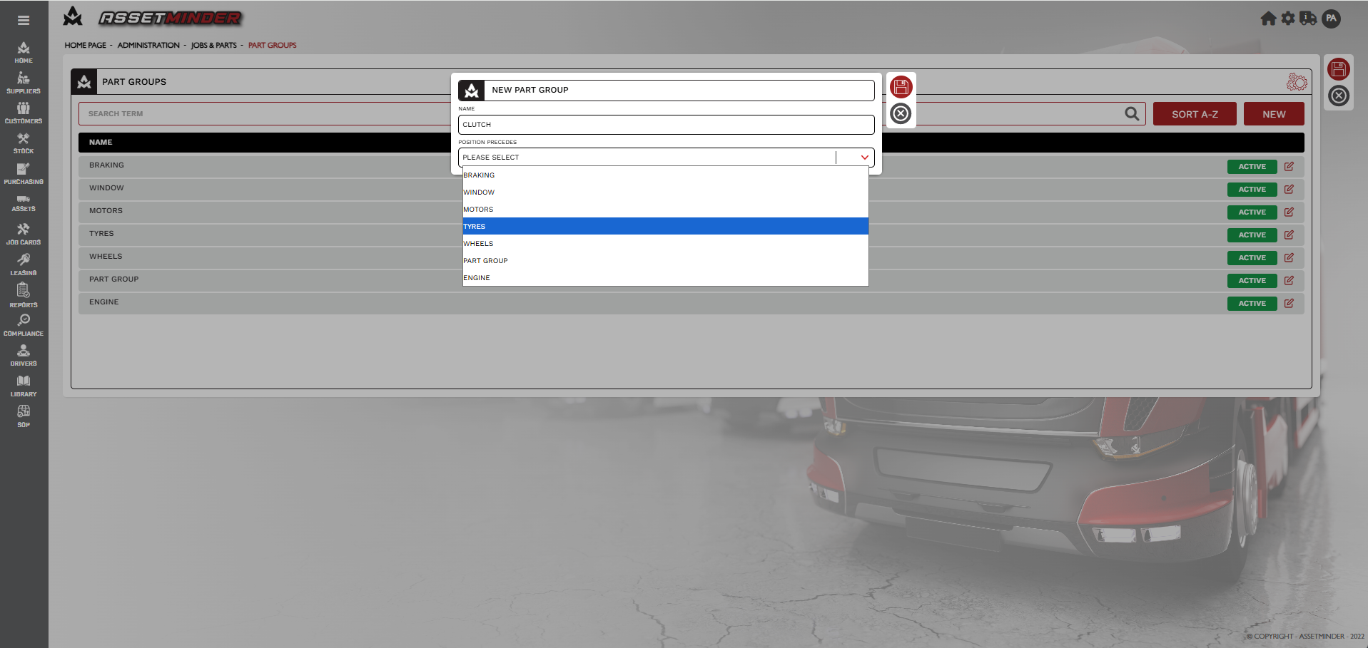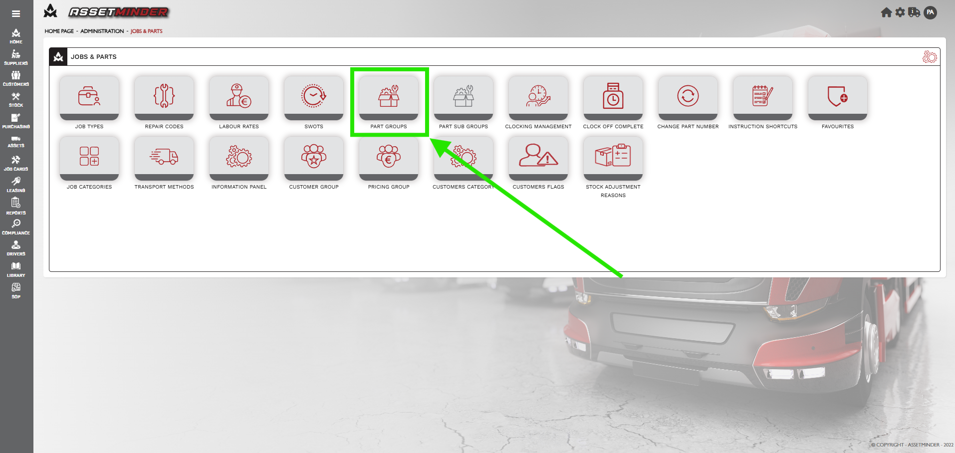 The Part Groups functionality in Assetminder is used to associate related parts. There are both Part Groups and Part Sub-Groups.
