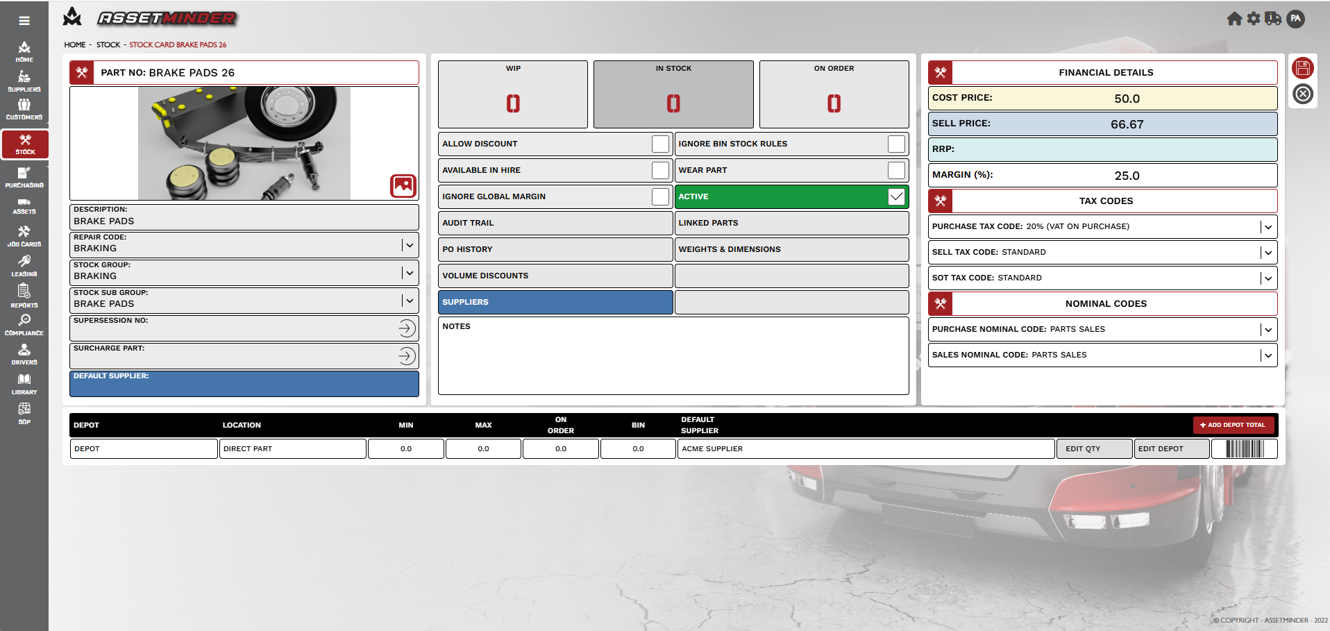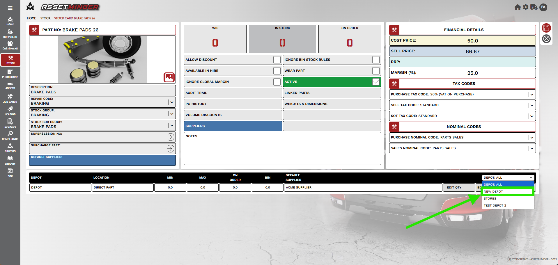 1. Open the stock record for the part.