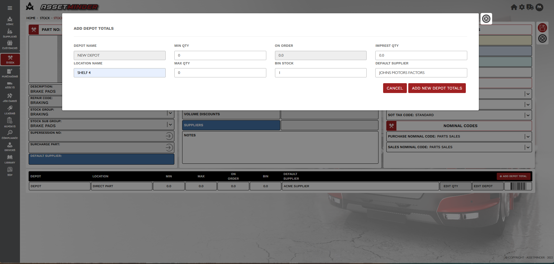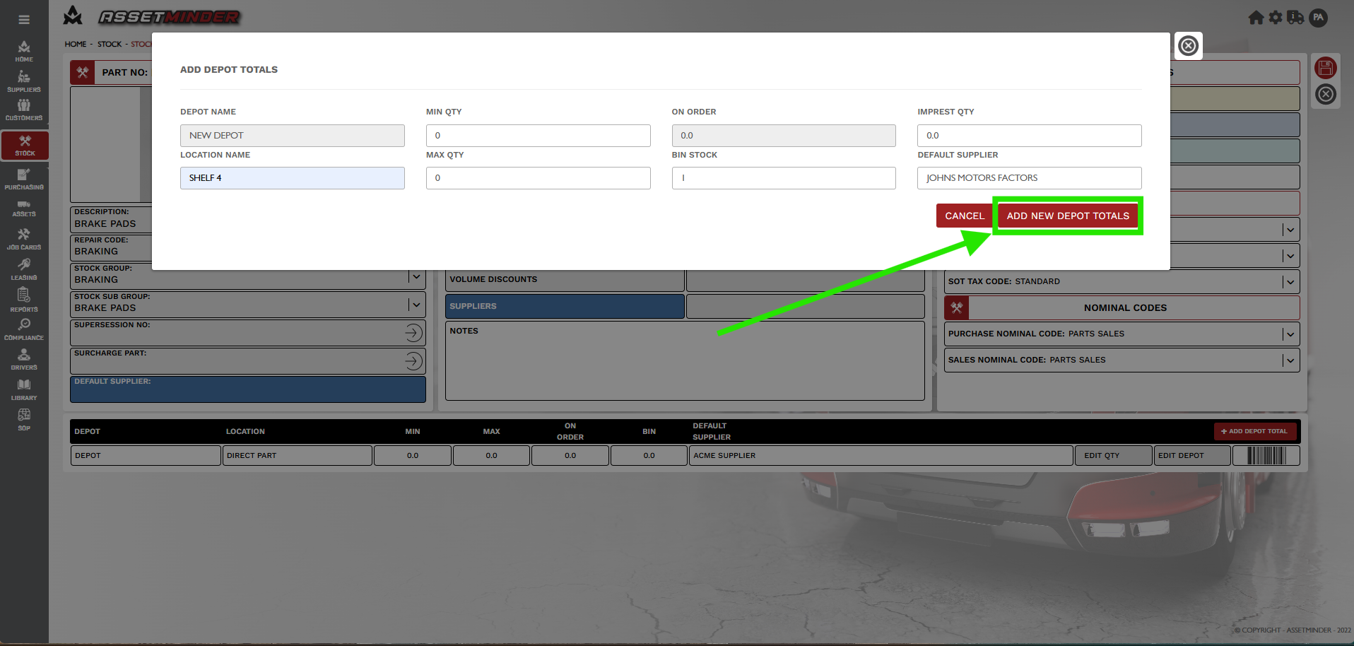 2. Click on '+ ADD DEPOT TOTAL' button on the bottom right-hand of the page as indicated. Select the depot you wish to add.