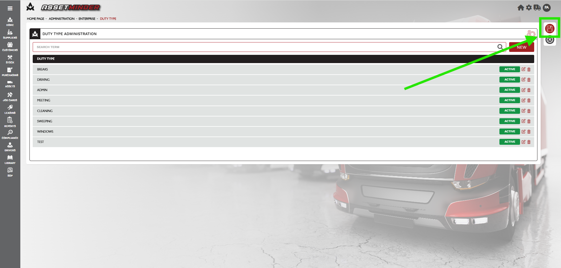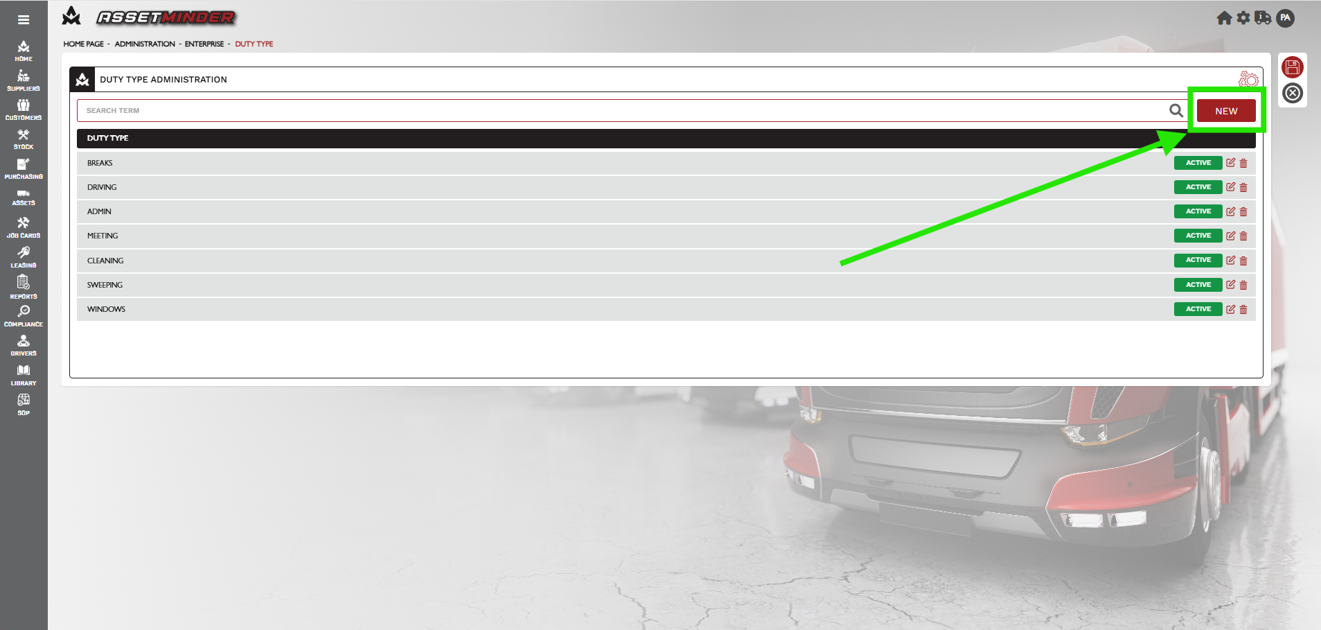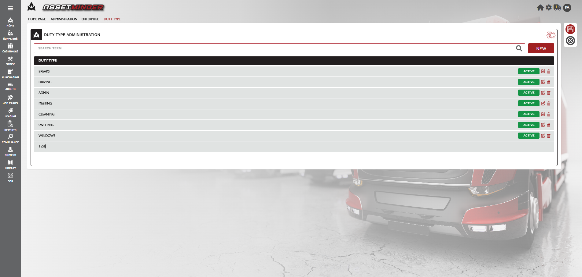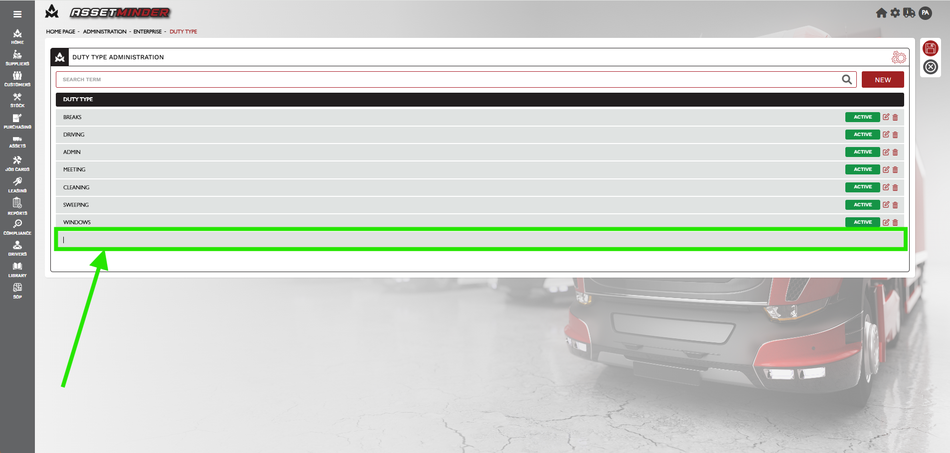 4. Click the Add New icon to add new duty types.