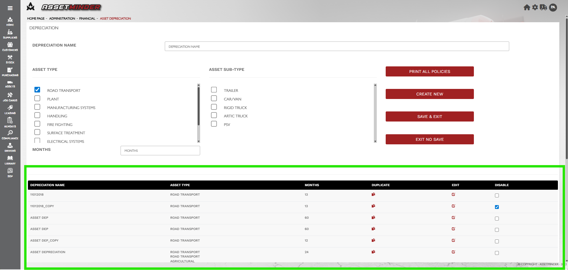 Depreciation is a process of deducting the cost of an asset over its useful life. Assets are sorted into different classes in Assetminder called Asset Types and Asset Subtypes, and each can have its own useful life. Depreciation is calculated using the straight line depreciation method.