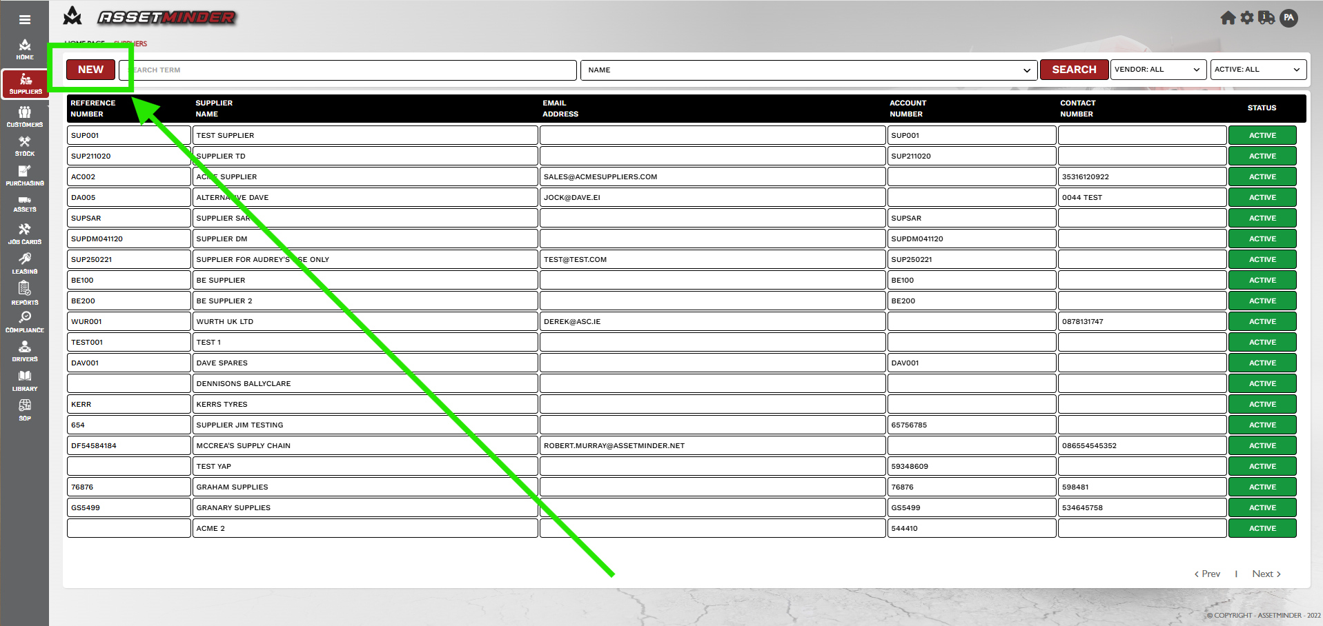 4. The new supplier has been added to the Assetminder database and is now available for use.