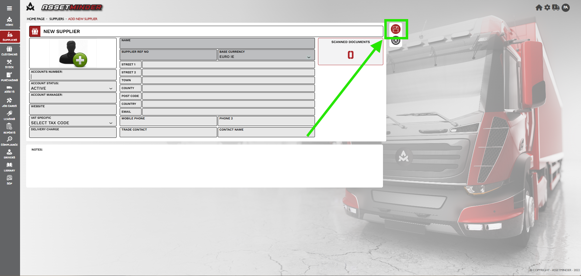 3. Complete the new supplier details and click on save.