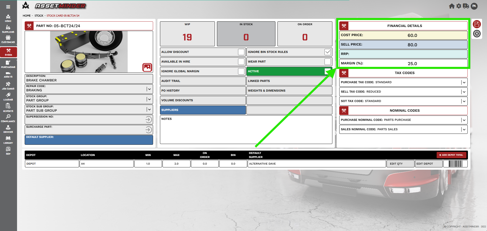 4. The COST PRICE or the SELL PRICE can be changed as needed by entering the new values into the associated fields.