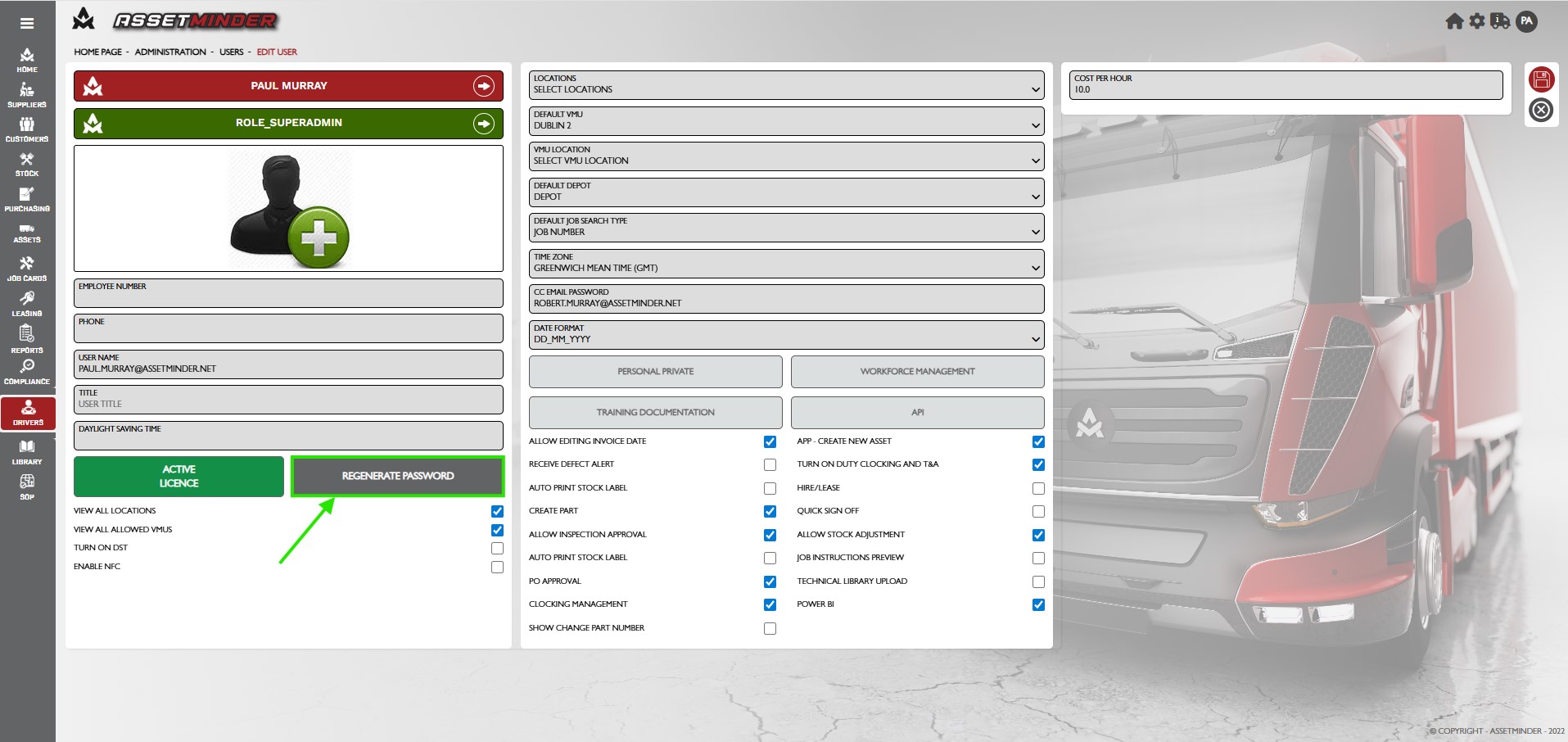 5. Click Regenerate Password. The password is now reset but the email has not been sent.
