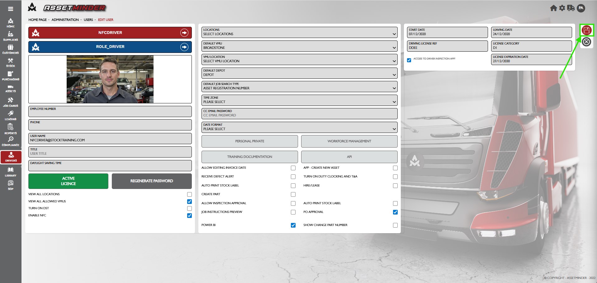 1. Open the Driver record and set a leaving date.