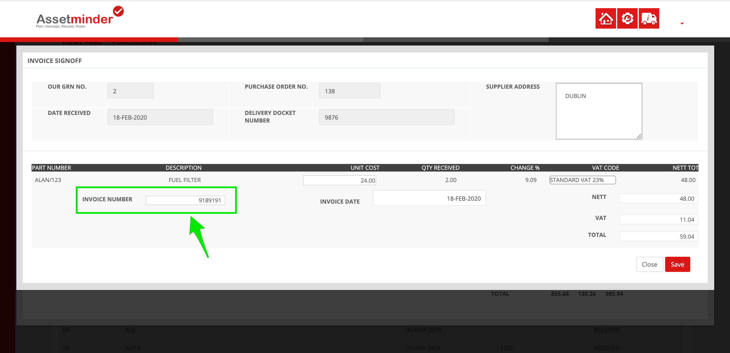 4. On the Sign Off-Screen, click the details icon on the received line item